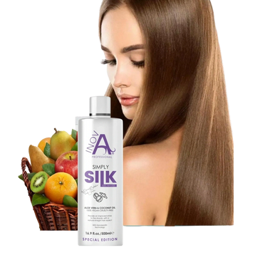 Simply Silk is a gel-based hair straightening with natural raw materials as Aloe Vera, Coconut Oil, Vegetal Keratin, Ojon Oil, Marine Algae Actives and the innovative Plex technology which provide 100% frizz-free and 100% straightened hair. improved shine to the strands,